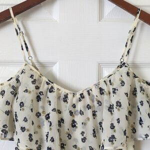 Abercrombie & Fitch Floral Chiffon Cold Shoulder A-Line Maxi Dress Ivory Navy S