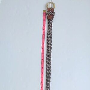 Belt has a solid brass buckle and measures appx. 39" L x 1" W