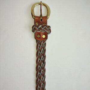 Vintage LEVI'S Hand Braided Leather & Denim Belt Orange Tab Brass Buckle Sz 32