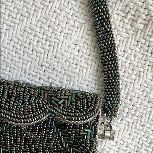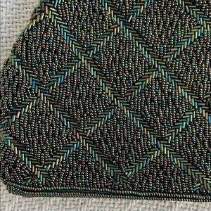 Chic dark green, vintage beaded design with a scalloped edge. Perfect condition. No label. Beautiful beading work.