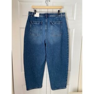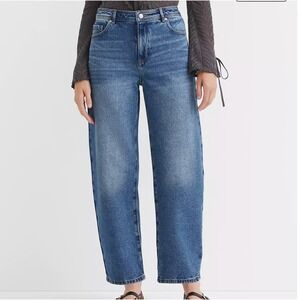 Keywords: Barrel Jeans, High Rise, Curved Leg, Tapered, Medium Wash, Denim, Contemporary, Minimalist, Casual, Loft Jeans, Mom Jeans, Balloon Leg, Architectural Denim, Everyday Wear, New With Tags
