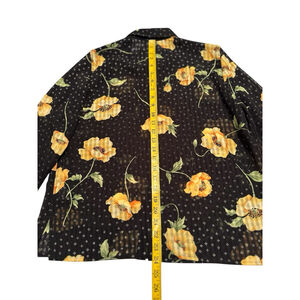 DESCRIPTION: Alfred Dunner Floral Button Down Semi-Sheer Blouse Womens 8P PETITE Black & Gold Long Sleeve