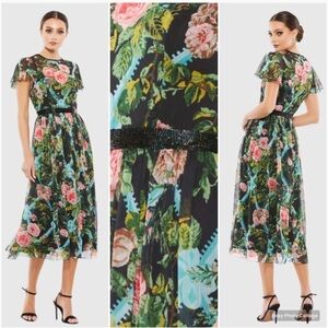 MAC DUGGAL 9149 Womens Floral Illusion Cap Sleeve Midi Dress