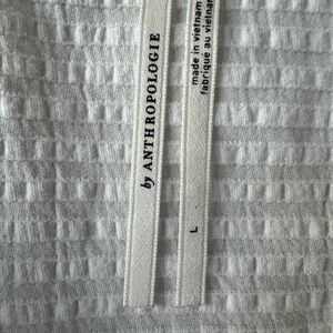 By Anthropologie poets blouse in a white seersucker type of fabric. Voluminous sleeves, smocked waistband and cuffs. Excellent condition, no flaws!