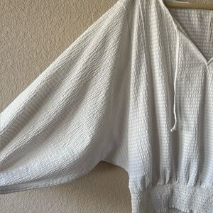 Anthropologie Rebecca Dolman Sleeve Smocked Hem Top White