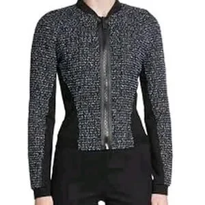 Elie Tahari Sandie Cropped Zip-Front Tweed Jacket MEDIUM MSRP: $398.00 MOTO PUNK