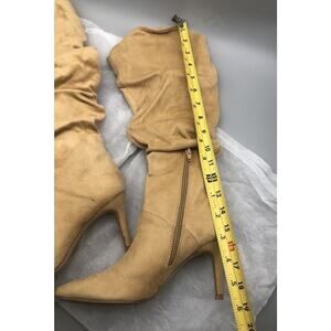 Women Knee High Boots Faux Suede Almond Toe Slouchy Side Zipper Booties 5.5 READ