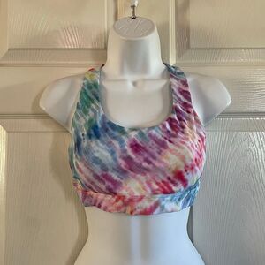 Athleta Small Sports Bra Pastel Tye Dye Open Back Athletic Wear