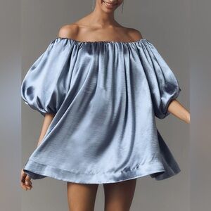 NWT Anthropologie Mare Mare Holiday Christmas Party Blue Satin Mini Dress Medium