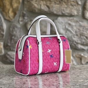 Michael Kors Small Airplane Logo Pink Duffle Crossbody