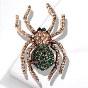 Spider Crystal Green Brooch