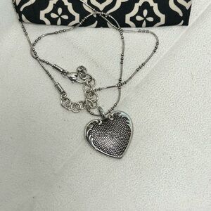 Brighton Cordoba Heart Necklace 20" Reversible Pendant Silver Plated & Cloth Bag
