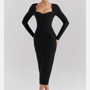 Chic black dress with long sleeves. Fitted silhouette. Perfect for elegant occasions.