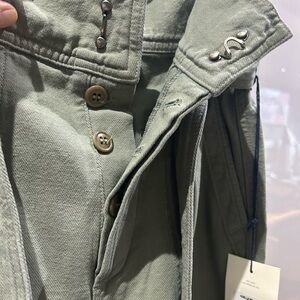 Citizens of Humanity surplus belted pants in an olive green colour. Features a button and zip closure with a tie belt. Utility style pockets.