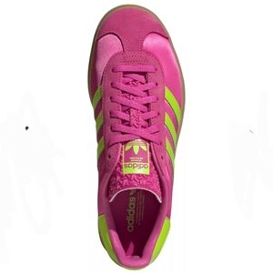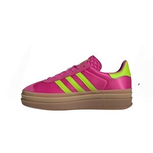 The adidas Originals Women's Gazelle Bold Shoes feature an iconic silhouette with bolder details, including serrated 3-stripes and a metallic-gold "Gazelle" accent. Designed for casual wear, these shoes boast a classic lace closure with a premium soft suede upper and a triple-stacked platform rubber outsole for added style and traction. Note that they run big, so it's recommended to size down by half a size for the perfect fit.