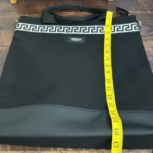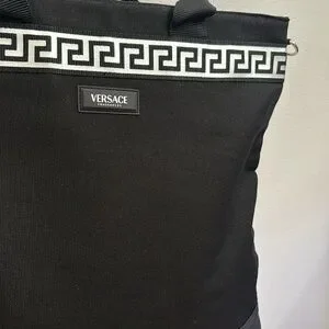 Elevate your style with this Versace black tote bag. Perfect for any occasion, this bag combines luxury and functionality.like brand new condition missing strap