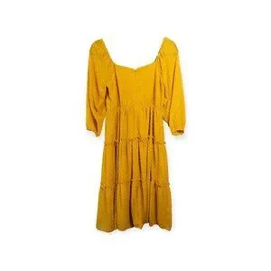 J.Crew Marigold Yellow Embroidered Polka Dot Tiered Midi Dress Size 4P Wedding G