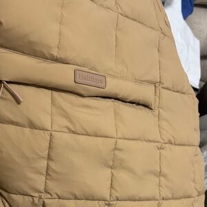 Stay warm and stylish with this tan puffer jacket. Perfect for chilly days, this jacket offers both comfort and fashion.