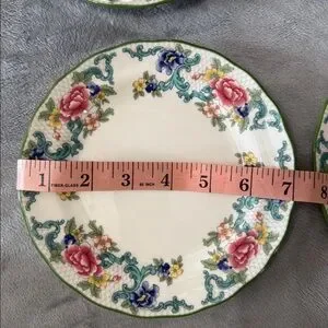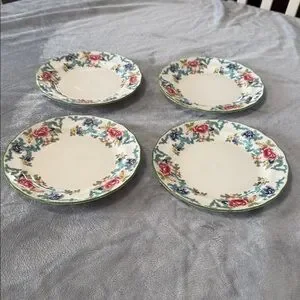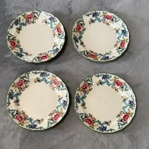 Royal Doulton Florandora Green 1981 Bread and Butter Pate T. C. 1127 Fine China Set of 4