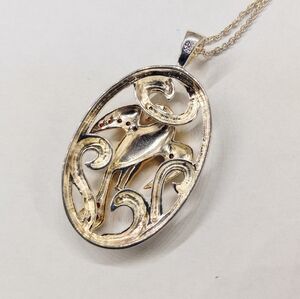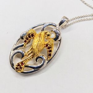 Sterling Two Tone Bird Red Stones Necklace