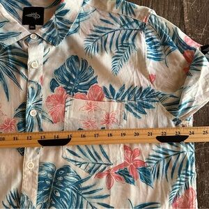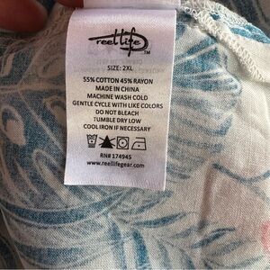 Reel Life 2XL Tropical Floral Hibiscus Button Down Shirt - Teal/Salmon
