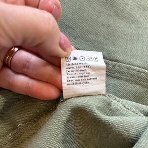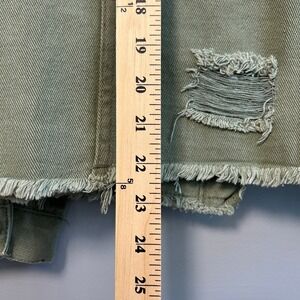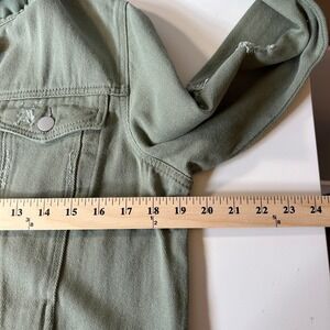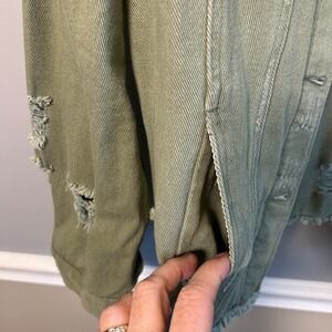 Olive Sage Green M Distressed Denim Trucker Jacket Frayed Hem Utility Grunge