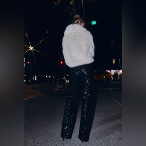 Shine in these elegant black sequin pants, perfect for a night out. The shimmering design adds a touch of glamour to any outfit.