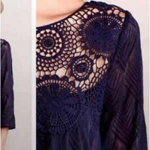 Holding Horses Anthropologie Augusta Navy Crochet Tunic Dress - S
