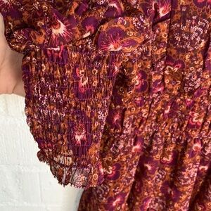 House of Harlow 1960 Floral Deep V Neck Ruffle Tiered Cottagecore Balloon Sleeve sz 10 / M