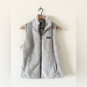 Cozy gray fleece vest by Patagonia. Perfect for layering.