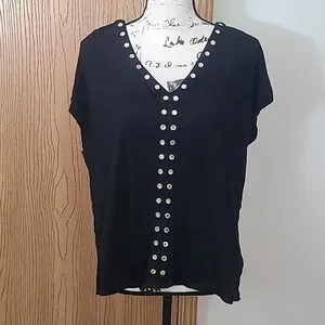 good condition. some of the stones are missing but it gives the shirt some cool dimension having silver and gold studs. 22" armpit to armpit