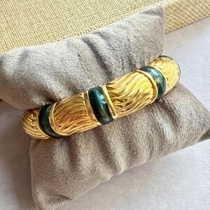 Vintage Monet Textured Gold-Tone and Green Enamel Bangle 💫