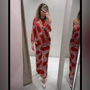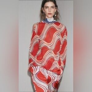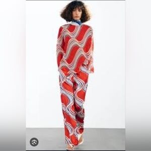 Zara Red and Blue Patterned Blouse
