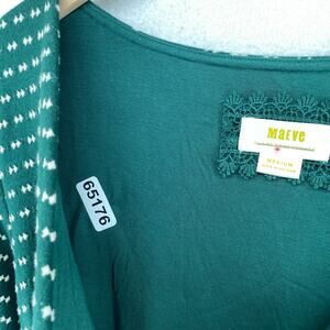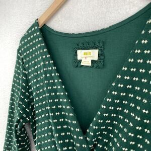 Chic mini dress by Maeve. Features a green and white pattern. Long sleeves with a flattering fit. Perfect for any occasion.