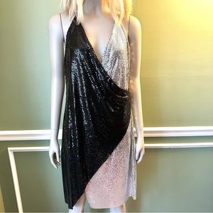 Alice + Olivia - $795 Ally Metallic Faux Wrap Dress, Black and Silver, Size 12