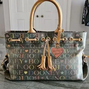 Dooney & Bourke Multicolor Logo Drawstring Tote | Y2K | Leather Trim