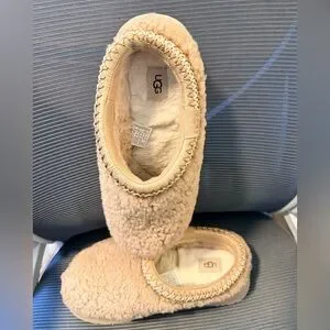 Almost new authentic Ugg slippers slides. Style called Taxx maxi curly Tan in color. Sz 8m ladies. Only worn a few time inside. 1” platform. Excellent like new condition. See pics. Retails $140