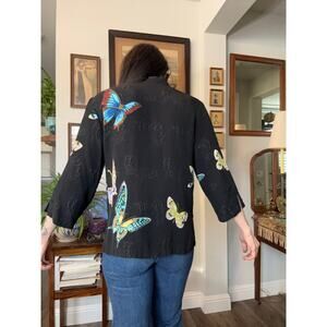 Silk fukure Citron shirt blouse vibrant butterfly print button down