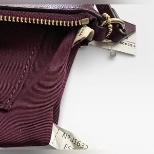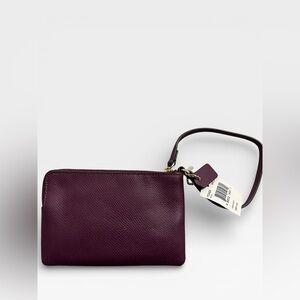 It includes a zip-top closure, fabric lining, and two internal credit card slots.