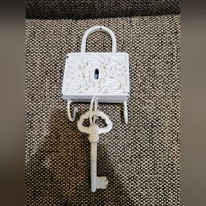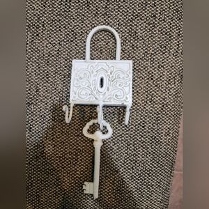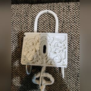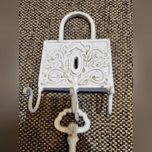 Vintage 12" Painted Heavy Cast Iron Wall Hanging Coat Hanger With Key