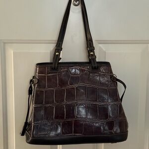 Dooney & Bourke Croc Embossed double handle tassel Bag Brown & Black & key fob