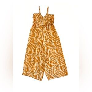 Jessica Simpson Wide‑Leg Jumpsuit Medium Mustard Tiger Print V‑Neck Spaghetti Straps EUC