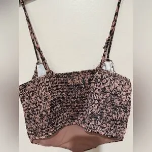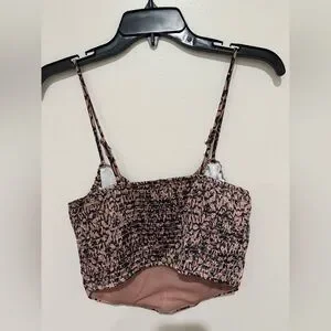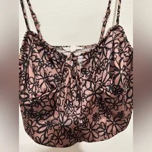 Chic top with floral pattern. Features spaghetti straps and tie detail. Size medium.