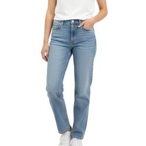 Details: High-rise waist with belt loops, zip fly, and single button closure; classic five-pocket construction with front hand pockets, coin pocket, and rear patch pockets, straight ankle-length leg, and a clean light wash finish that pairs easily with tees, sweaters, and jackets.
