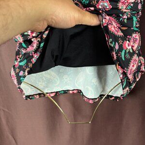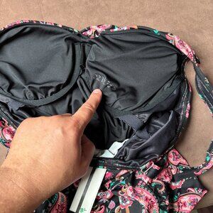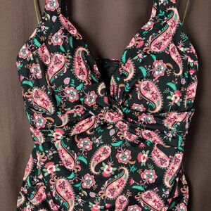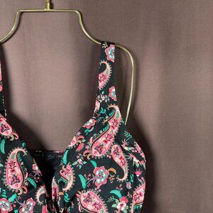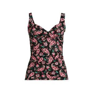 Lands' End Women's 14, 14-22W LONG Wrap Underwire Tankini V-Neck Swimsuit Top Black Multi Paisley Floral
