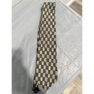 Van Heusen 100% Italian Silk Mens Neck Tie Green Tan Geometric Pattern