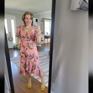 FARM Rio Pink Tropical Midi Dress Size Xs
