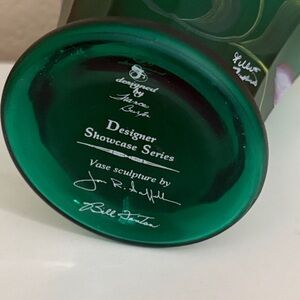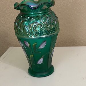 Fenton Emerald Vase with Lavender Floral Motif