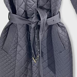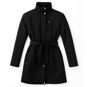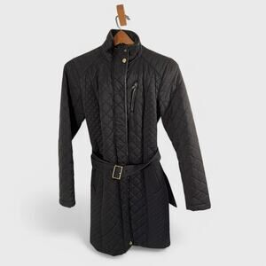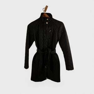 Cole Haan Quilted Belted Coat Black Classic Fit Lightweight Fall XS