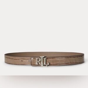 Centered by a polished “LRL” buckle, this belt features a reversible design, allowing you to easily switch up your look. One side is rendered in glossy crocodile-embossed leather for rich texture, while the other is crafted with supple full-grain leather for a naturally smooth finish.